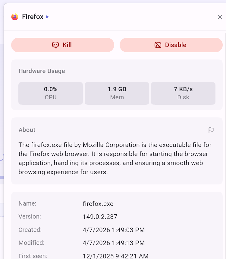 I’m glad you could confirm the optional AppControl privacy mode works! We launched with this mode a few months ago, but the first version had a bug that someone on a popular PC hardware forum found, but we were able to fix it pretty quickly. With the optional privacy mode with AppControl you could run everything 100% local, from AppControl itself to the LLM, like you tried. But, you’ll miss out on insights/suspicious apps, which is a pretty useful thing for the LLM to understand what’s going on I think?