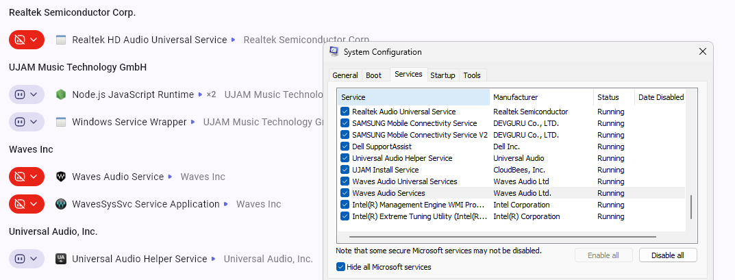 @Hooby sorry for the issue. I discussed with our team and they asked if you rebooted since you did the disabling? Then, if not, if you reboot are they still running or not? This will help us diagnose the issue with these services.