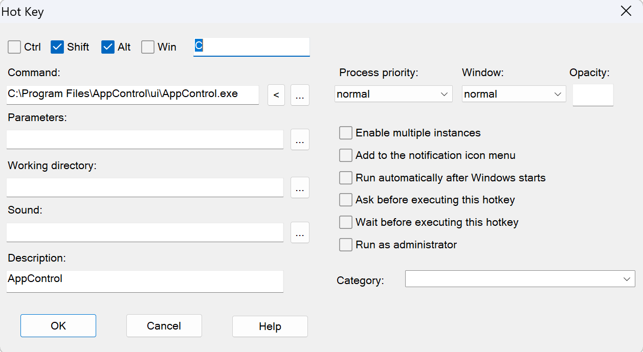 Now you can invoke AppControl by just pressing your key combination.