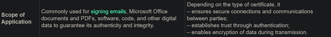 I must admit I didn’t know the existence of “Let’s Encrypt” certificates which if I understand correctly, from what you write, would be less reliable when it comes to certifying the identity of the author. I’m no expert but it turns out that Digital signatures and Digital certificates are different thingshttps://www.thesslstore.com/blog/digital-signature-vs-digital-certificate-a-quick-guide/