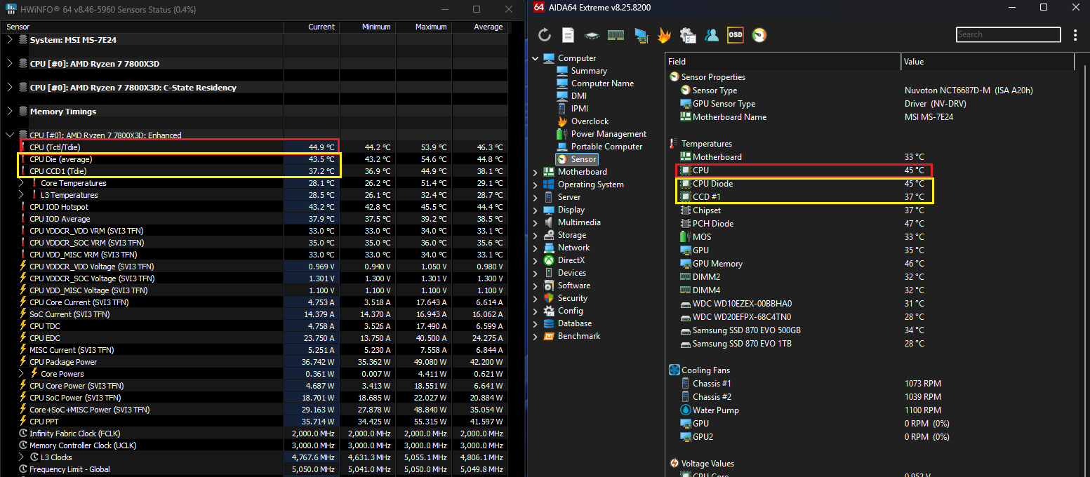 We use Tdie, which is the real physical temperature. There is also Tctl, which is readable but may sometimes include an artificial offset. Tdie reflects the actual silicon temperature, while Tctl may be adjusted for system or fan control behavior if that makes sense?